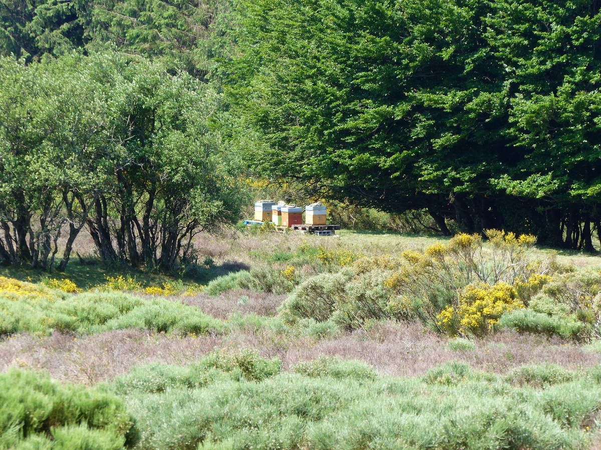 Nous sommes dans un paysage de landes : gentianes jaunes ( Gentianacées ), genêts à balais ( Fabacées ) et bruyères ( Ericacées ) qui font le régal des abeilles.