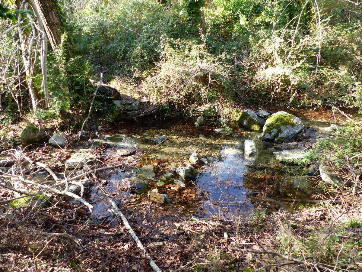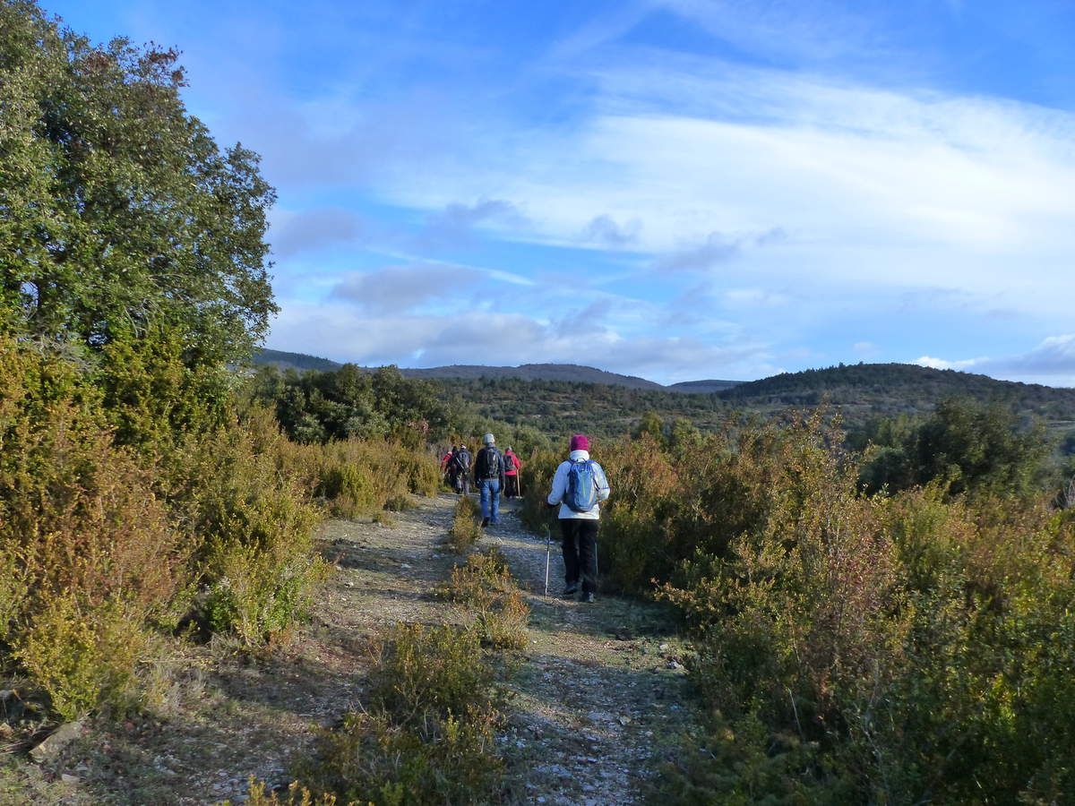 Le vent cinglant nous pousse à une allure assez rapide vers le hameau de Copujol. De nombreuses traces laissées par le passage de chevaux nous indiquent que la ferme équestre de Font Seque n'est pas loin.
