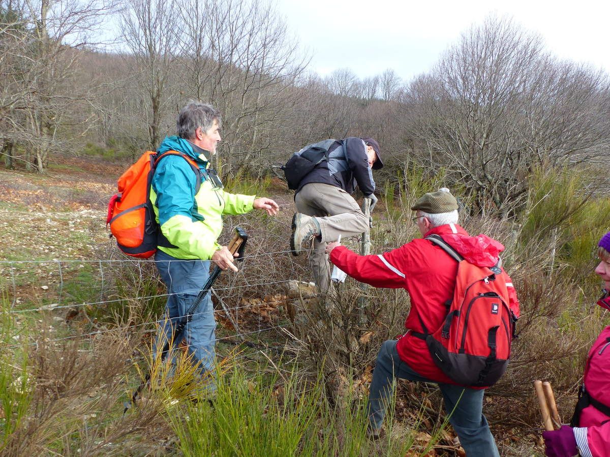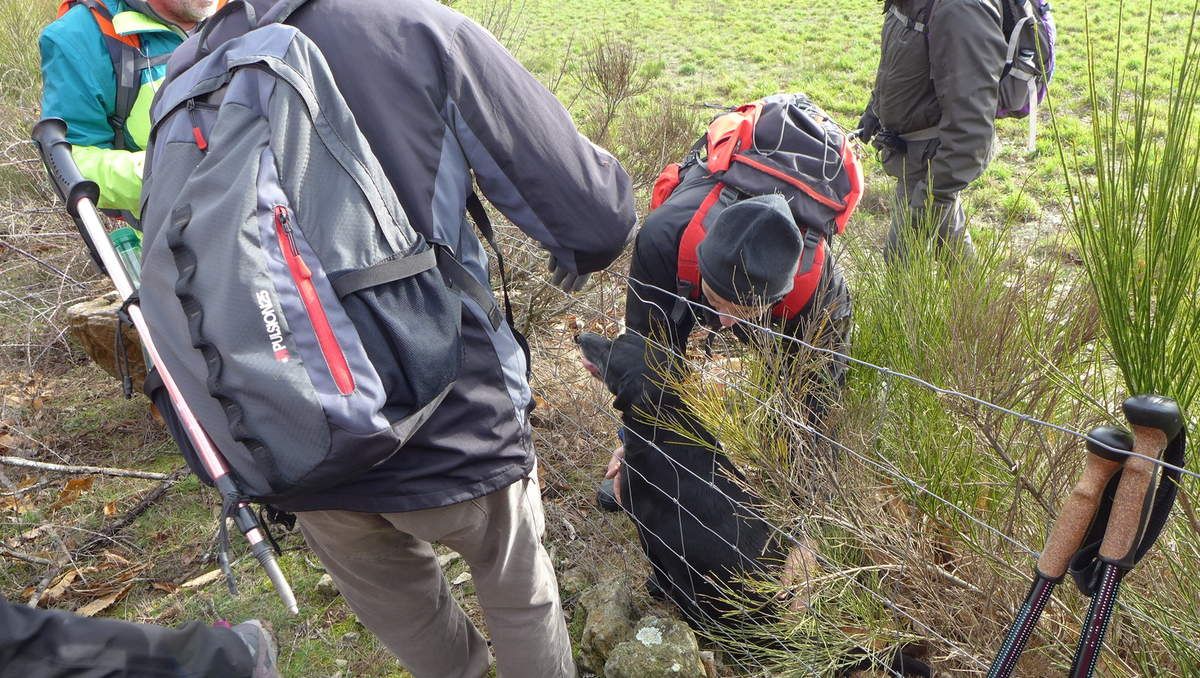 Il faut à tout prix retrouver la piste, ce qui va demander quelques efforts car le terrain est très pentu. Encore une clôture à franchir, la dernière nous l'espérons car certaines Godillottes commencent à "rouspéter", il y a de la révolte dans l'air !