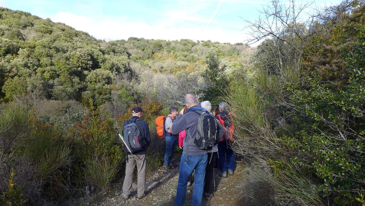 Le sentier est bordé de chênes verts et kermès.